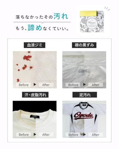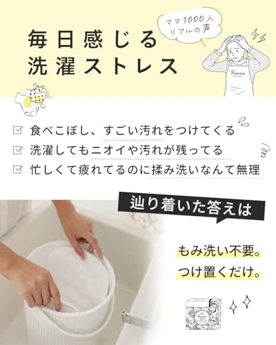 こすり洗いや揉み洗いは一切なし、浸け置きだけで血液や汗染みなどの落としにくい汚れが綺麗に落ちて、時間の短縮なるとのこと!