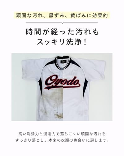 ウールやシルクといったデリケート衣類には使えませんが、綿やポリエステルなどの水に強い衣類の汚れを強力に落とします。