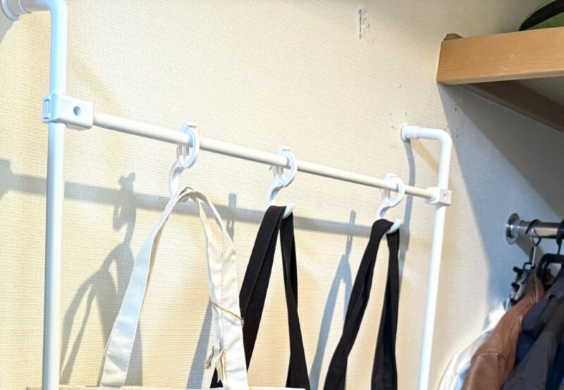 バッグや小物を収納したい場合は、別途「S字フック」を用意するのがおすすめです。