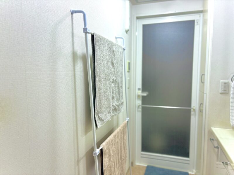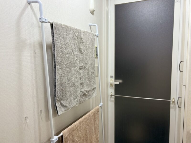 使用済みのバスタオルを洗濯機に入れる前に。一旦干しておくことで、あの嫌な生乾き臭を防げます。