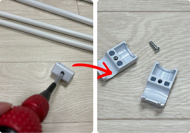 ジョイント器具のネジをプラスドリバーを使って緩め外しておく。