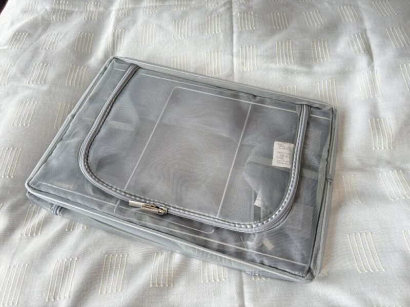 こちらはファスナーを閉めてしまうと中身は見えなくなります。中身を見られたくないものの収納に向いていますね。