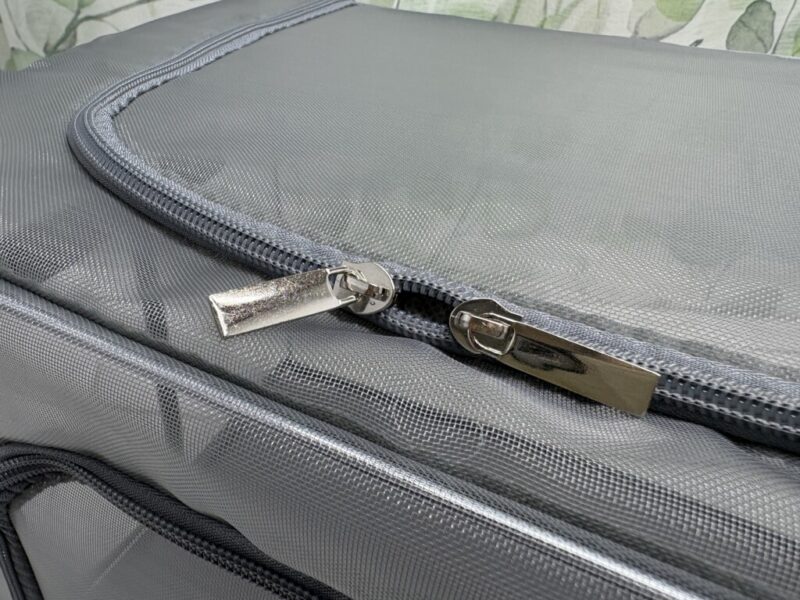 メッシュタイプと同じく上部と前面にファスナー付きに取り出し口があります。