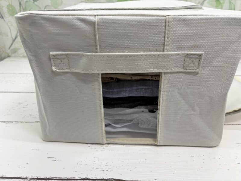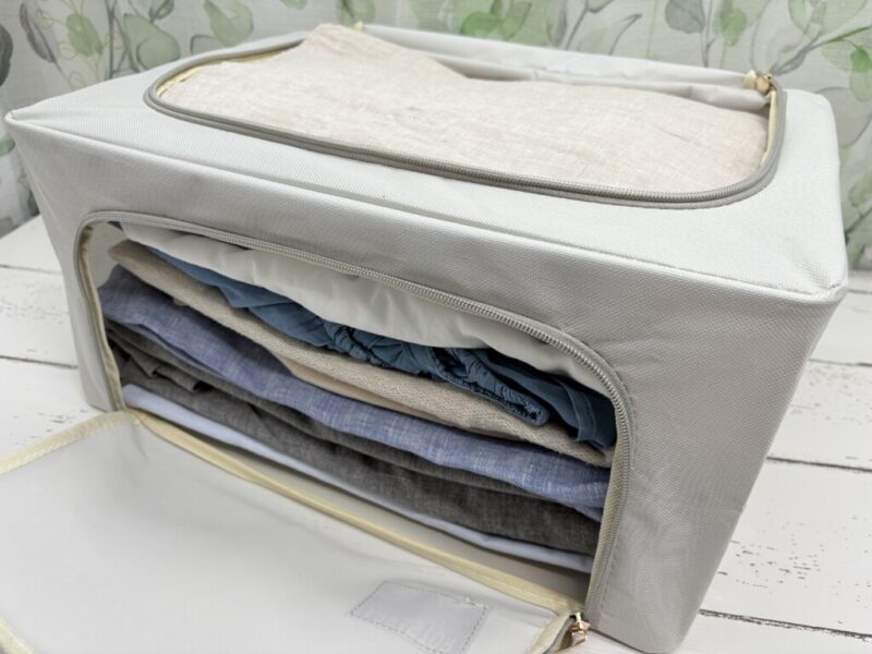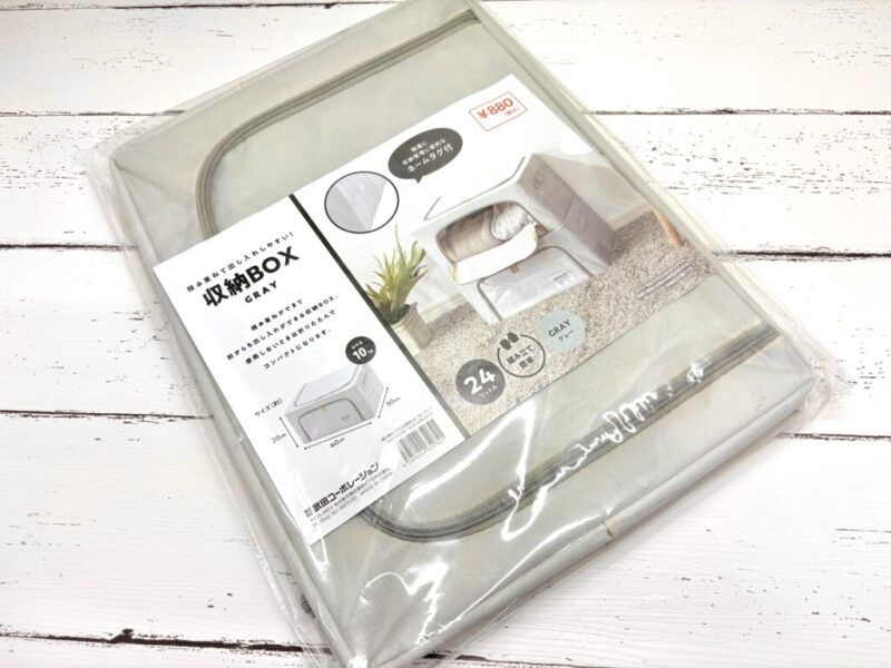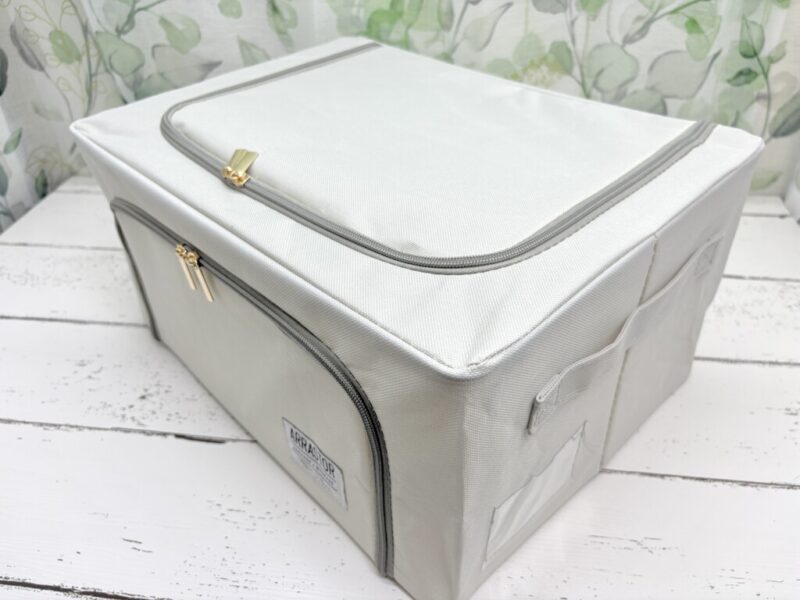 安い収納用品でありがちな「ファスナーがペラペラですぐ壊れそう」という不安。このボックスはファスナーにしっかりとした厚みがあり、スムーズに開閉できます。多少手荒くひっぱっても折れて使えなくなるってことはなさそうです。長く使う上で、ここは譲れないポイントですよね。