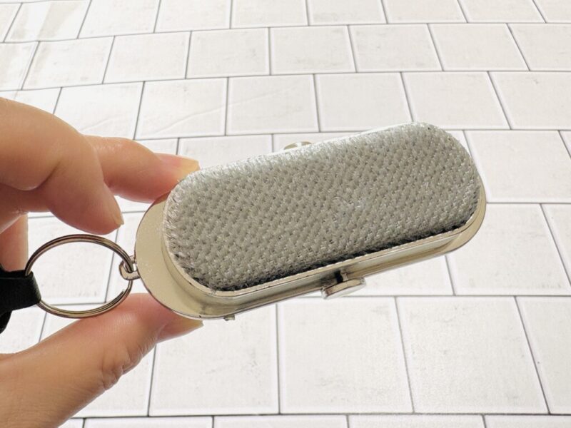 一見すると、ワイヤレスイヤホンのケースやおしゃれなガジェットポーチのようにも見えますが、実はこれ、1本に「粘着ローラー」と「エチケットブラシ」の2つの機能を詰め込んだ超実力派クリーナーなんです。